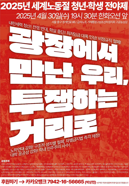 “광장에 모인 우리, 투쟁의 거리로”...노동절 맞아 430 청년학생 전야제 연다