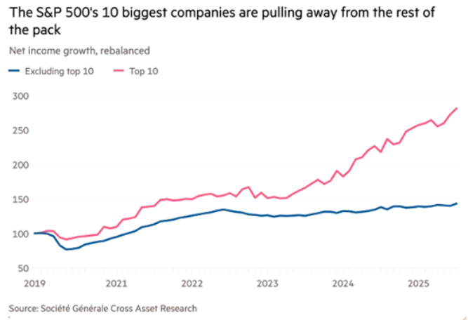 하지만 AI 열풍에 의해 움직이는 주식 시장의 활황은 미국 경제 전반의 흐름과 점점 더 괴리를 보인다.