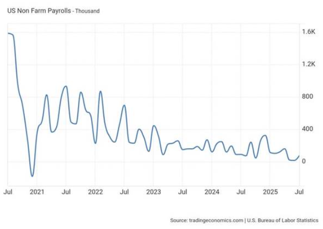 그리고 고용 문제도 있다미국의 최신 고용 지표는 매우 부진하게 나왔다미국 노동통계국(Bureau of Labor Statistics)은 7월 신규 고용이 고작 7만 3천 명 증가하는 데 그쳤다고 발표했으며, 5월과 6월의 수치도 대폭 하향 수정했다실업률은 상승했다실제로 5월부터 7월까지 석 달 동안 추가된 일자리는 10만 6천 개에 불과했고이는 그 직전 석 달 동안 추가된 38만 개보다 크게 줄어든 수치다.