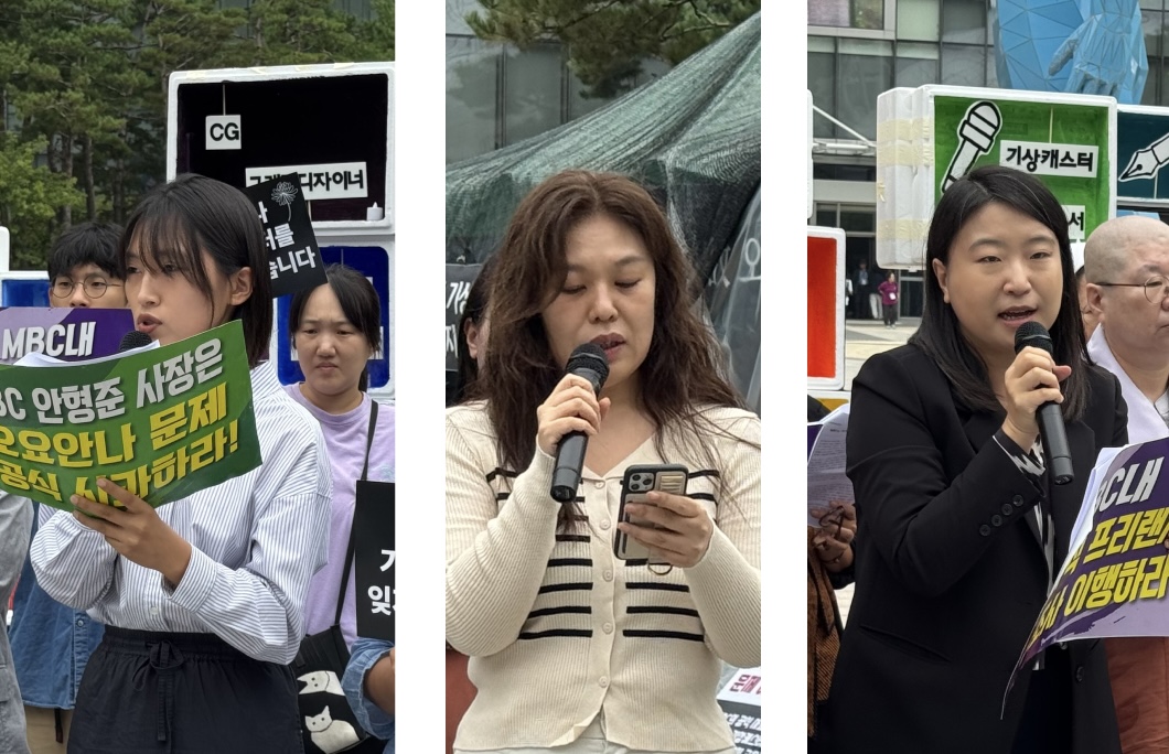 ‘블랙리스트 이후’ 총괄디렉터 정윤희 작가는 “불과 몇 달 전까지 언론과 문화예술 등에 대한 전방위적인 표현의 자유를 탄압해 온 입틀막 정권에 의해, 소위 ‘바이든 날리면’ 사건으로 시달렸던 MBC를 지지했던 사람으로서 MBC의 묻는다”면서 “표현의 자유가 왜 중요한가? 사람이 생각하고 일하며 살아가는 기본권이기 때문이다”, “사람이 사람답게 일하며 살아갈 권리를 누리는 것은 MBC 간부와 정규직에게만 있는가” 일갈했다.