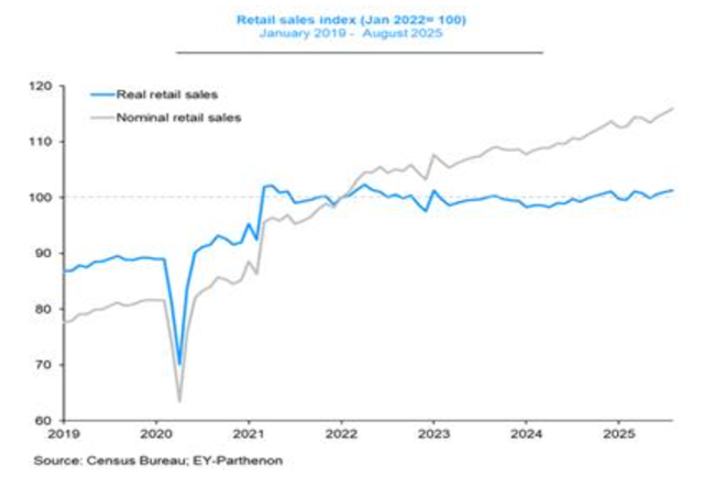 여기에 정부 지출 축소도 겹치고 있다현재 의회가 강행하고 있는 연방 정부 부처 폐쇄는 트럼프 행정부에 또 한 번의 기회를 주었다예산적자와 증가하는 국가 부채를 줄이겠다는 명목으로 연방 공무원 수를 대폭 감축할 수 있는 기회다하지만 이 시도는 헛된 일이다트럼프가 주장하는 관세 수입 증가로 재정적자를 줄일 수 있다는 주장은 신뢰하기 어렵다. 2025년 1월 이후 관세 수입은 2025 회계연도 연방 정부 총수입(5조 2천억 달러중 고작 2.4%에 불과하다.