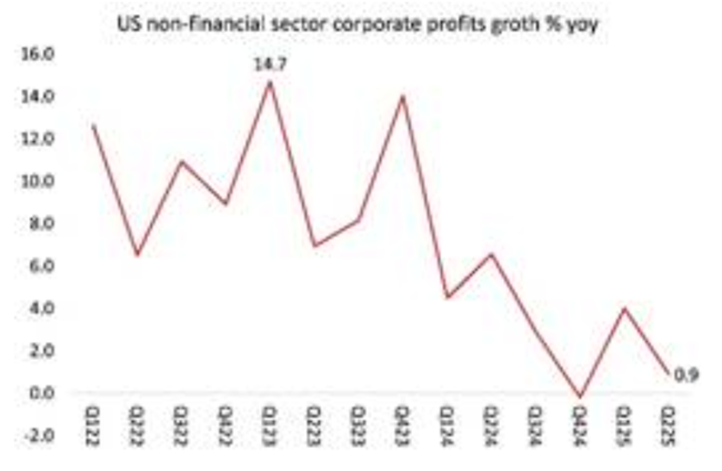 기업 이익은 여전히 증가하고 있다금융업을 제외한 S&P 500 기업들의 영업이익은 직전 분기 기준으로 전년 대비 9% 증가했다매출도 물가 상승률을 반영하기 전 기준으로 7% 늘었다그러나 이런 성장은 매그니피센트 세븐으로 불리는 최상위 대기업들에 집중된 결과다전반적으로 보면미국 비금융 기업 부문 전체에서는 이익 증가세가 점차 사라지고 있는 조짐이 나타나고 있다.