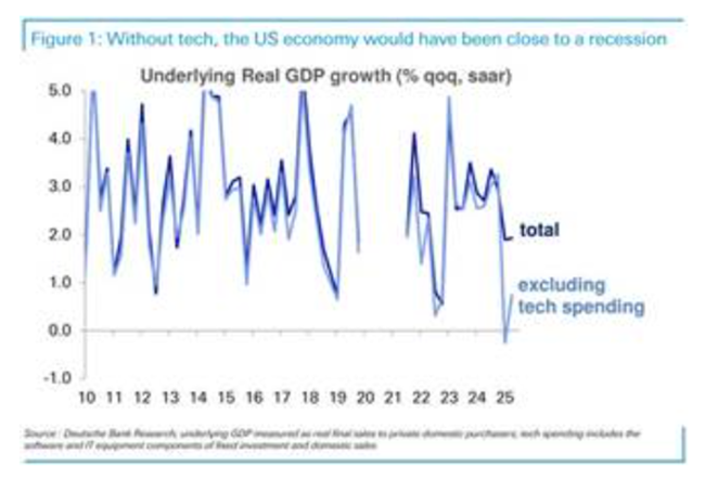 따라서 기술 부문 지출이 없었다면미국 경제는 올해 경기침체에 근접했거나 이미 침체에 들어섰을 것이다.
