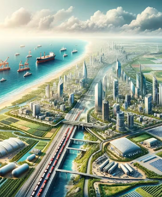 도시 설계는 이 계획에서 중심적 위치를 차지한다. 오스만(하우스만)식 파리와 마찬가지로, 이 프로젝트는 공간 재조직을 통해 반란을 근절하려 한다. 전제는 완전한 탑불라 라사(tabula rasa), 즉 물리적·지형적·법적 백지 상태다. 해안은 가스·석유 플랫폼을 위한 추출적 경계로 구상된다.