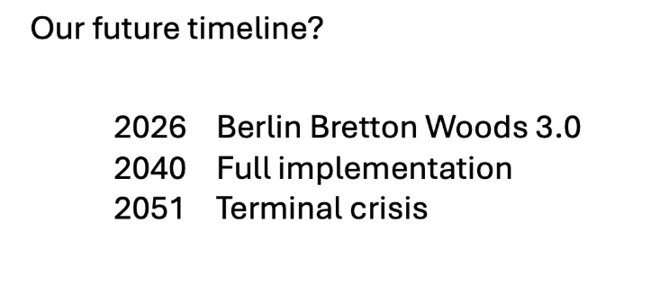 지금 만약 우리가 진짜로 새로운 브레턴우즈를 시작한다고 가정하고역사적 전개 방식을 그대로 따른다면그 일정은 다음과 같을 것이다.