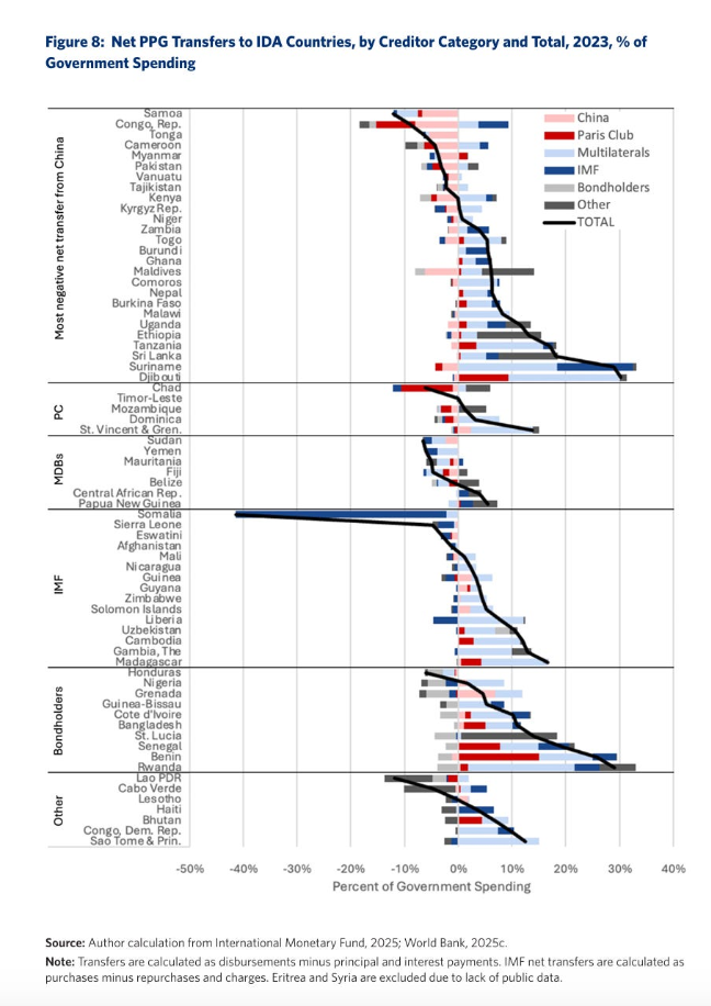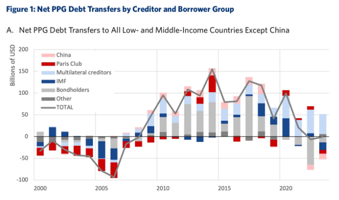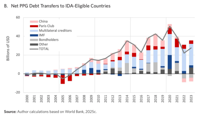 이러한 현상이 신규 대출이 급감한 시기와 동시에 발생했기 때문에, 그 순 효과는 중국이 개발 금융의 공급자가 아니라 저소득 국가들로부터 순지급을 받는 수취국으로 전환되었다는 점이다.