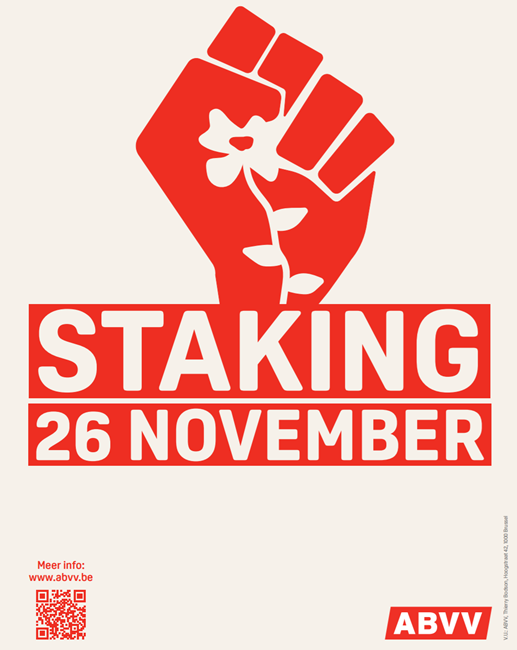 벨기에노동조합총연맹의 총파업 포스터. 출처: ABVV