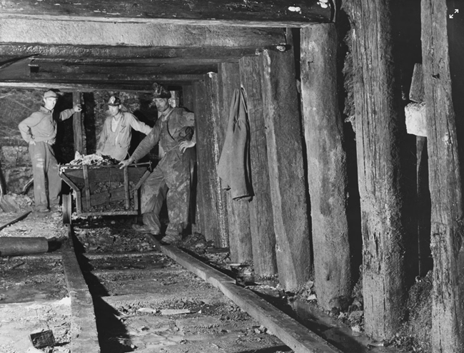 1953년 5월 7일, 애리조나주 코브(Cove)에 있는 커-맥기(Kerr-McGee) 우라늄 광산에서 나바호 광부들이 작업하고 있다. 이 광산들에서 일한 나바호 남성들은 암에 걸릴 확률이 거의 30배나 더 높다. 출처: Unsplash, The New York Public Library
