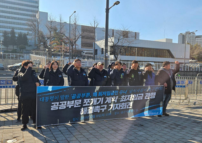 이에 공공운수노조는 △공공부문 전반에 적정임금 원칙 제도화 △최저가 입찰과 인건비 절감 중심의 공공조달 구조 개선 △비정규직과 자회사 노동자에 대한 동일노동 동일임금 적용 등을 요구했다.