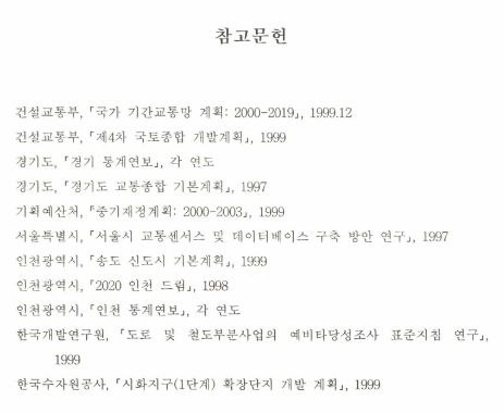 송도-시화 광역도로 사업 예비타당성 조사 보고서 참고문헌 목록. 국립중앙도서관.