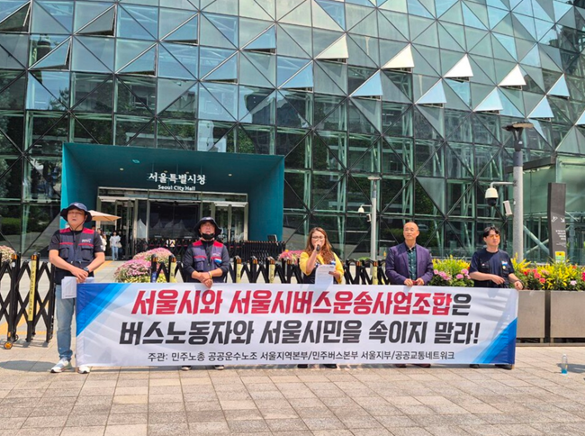 이어 공공운수노조는 “준공영제 구조상 모든 이익은 사업주에게 몰리고, 노동자는 정당한 임금을 받지 못하며 시민은 세금 낭비와 요금 인상 압박이라는 이중의 피해를 겪고 있다”고 밝혔다. 그러면서 “이런 정책적 모순을 해결하는 방식이 필수공익사업 지정이라면 누가 이를 납득할 수 있겠느냐”고 반문했다. 이에 노조는 서울시에 대해 “노동자를 억누르며 정책 실패를 감추려는 시도를 중단하고, 준공영제 운영 책임을 직시하라”고 요구하고, 또 국회에는 “서울시의 행정 실패를 덮기 위한 필수공익사업 지정 법안을 폐기하라”고 촉구했다.