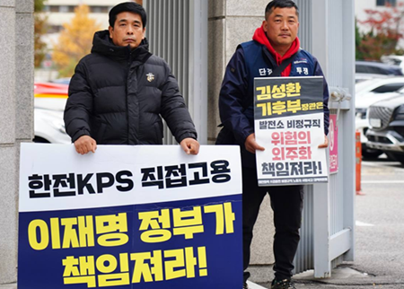김성환 기후에너지부 장관이 26일, ‘에너지 공기업 안전관리체계 점검회의’를 했지만, 정작 안전관리에 가장 취약해 죽어가고 있는 비정규직 노동자들의 목소리는 담기지 않았다. 기후에너지부는 발전 5사와 한전KPS·한전산업개발 등 발전 공공기관의 정책·정원·예산·경쟁체제·민간정비 구조를 관...