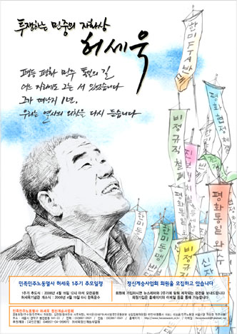 허세욱 열사가 돌아가신 지 벌써 1년이 되었다. 한미FTA 회담장 앞에서 분신하셨다는 소식을 접한 작년 4월 1일 그 때의 충격과 안타까움이...