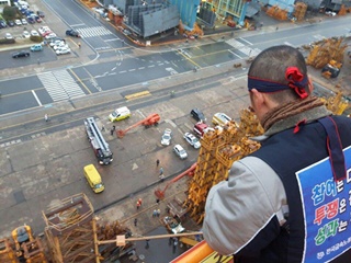 대우조선해양 노동자 2명이 11일 새벽 고공 40미터 높이의 크레인 점거 농성을 시작했다. 대우조선지회 신상기 지회장과 김종호 대외협력실장은 이...