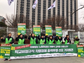 학교 내 비정규직 노동자들이 교육현장의 차별 철폐를 위한 공동행동에 나선다. 시도교육청별로 진행 중인 단체교섭을 압박하기 위한 비정규직 노동자들...