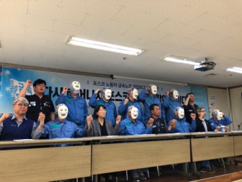 포스코 노동자들, 민주노총에서 금속노조 가입보고 기자회견 열어