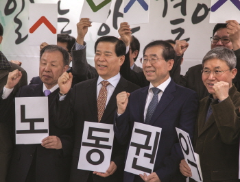 24일 광화문 광장서 열린 전국노동자대회에 노동자 2만여 명이 참여했다. 이들은 문재인 정부에 최저임금 정책, 비정규직 제로 정책, 구조조정 중...