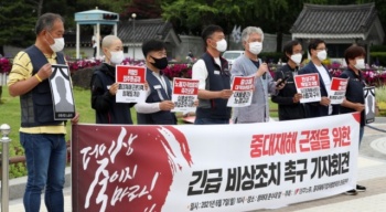 민주노총과 중대재해기업처벌법제정운동본부(운동본부)는 7일 오전 청와대 분수대 앞에서 기자회견을 열고 “문재인 대통령의 ‘현장성 있는 대책 수립 ...