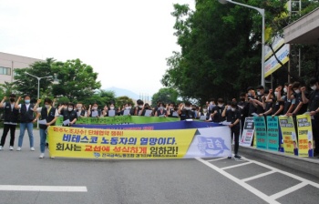 무기한 파업 나선 조합원들 “경찰이 출입과 식사마저 통제…끼니마다 전쟁”