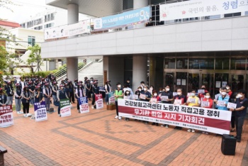 전면 파업 5일차 건보공단 고객센터지부 “노노갈등이 본질 아냐, 문제는 공기업의 외주화”