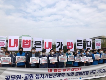 온전한 정치기본권 쟁취를 위해 공무원과 교원이 힘을 합쳤다. 이들은 국회 입법청원 요건인 10만 명의 동의를 받아 공무원, 교원의 정치기본권을 ...
