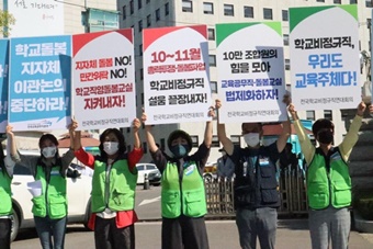 전국학교비정규직연대회의(연대회의)는 28일 오전 서울시교육청·정부서울청사·국회 앞으로 분산해 동시 기자회견을 열고 명절상여금 등 복리후생 차별,...