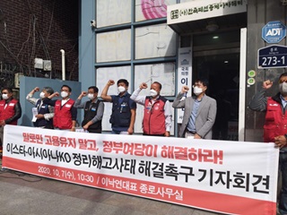 이스타-아시아나KO 대량해고 사태…이낙연 대표 사무실 앞 규탄