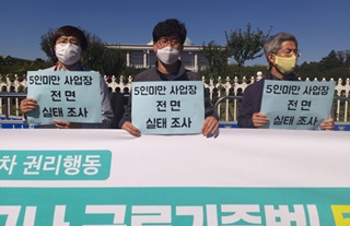 고용노동부 국정감사에 앞서 ‘가짜 5인미만 사업장’ 문제 해결을 요구하는 전국 동시다발 기자회견이 열렸다. 그동안 가짜 5인 미만 사업장 노동자...