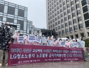 LG의 자회사가 LG청소노동자들이 본사 건물에서 선전전을 할 시 매회 200만 원을 지급하도록 하는 가처분 신청을 내 비판이 일고 있다.
