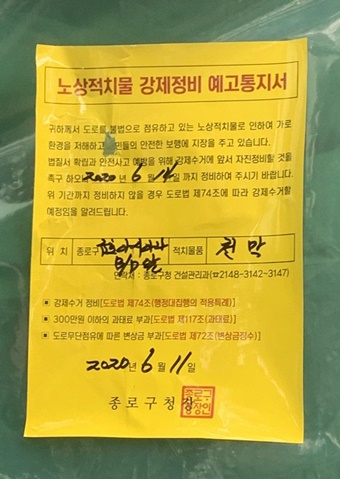 구급차 대동, 종로구청 12명 방문...“14일까지 철거하라”