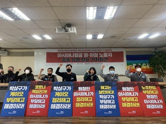 아시아나 항공기 청소노동자들이 하청회사의 전체 지분을 보유한 금호아시아나문화재단(금호문화재단) 회장이 정리해고 문제를 해결해야 한다고 지적했다....