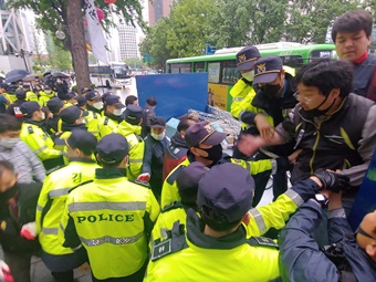 아시아나 항공기 청소노동자 해고 관련 투쟁 문화제 준비과정에서 참가자와 용역간의 충돌이 발생했다.