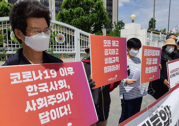 사회변혁노동자당(변혁당)은 코로나19로 자본주의의 민낯이 드러났다며 이후 사회 체제는 사회주의여야 한다고 주장했다. 변혁당은 “코로나19는 한...