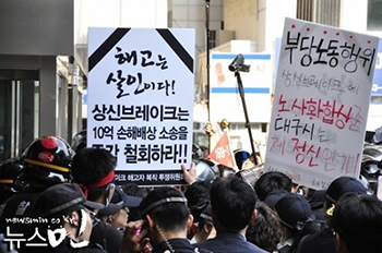 금속노조 유성기업지회는 8일 오후 서울 서초구 대법원 앞에서 기자회견을 열고 “노동 3권을 파괴한 비용을 회삿돈으로 처리한 유성기업 유시영을 대...