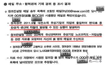 서울중앙지방검찰청 ‘국정원 노조파괴 공작 의혹’ 수사기록에 따르면, 2011년 5월 금속노조 유성기업지회가 파업에 돌입하자, 국정원 정 모 처장...
