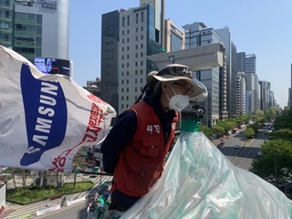 25미터 철탑 위, 삼성 해고자 김용희와 손을 잡았다