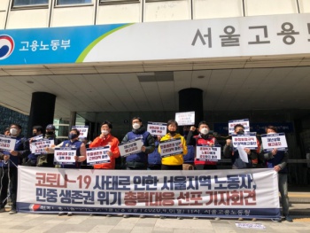 민주노총 서울본부, 서울민중행동은 6일 오전 서울시 중구 서울지방고용노동청 앞에서 기자회견을 열고 “코로나-19로 무급휴직, 묻지마 해고 사태가...