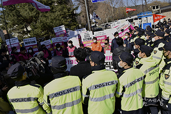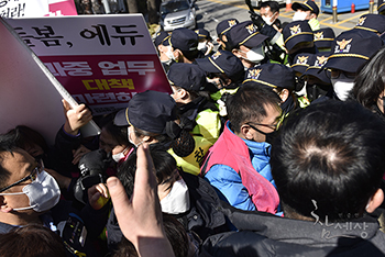 [포토] 학교 비정규직 기자회견 에워싼 경찰
