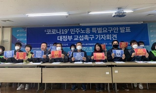 민주노총이 코로나19 관련 취약 노동자 보호와 사회·공공성 강화 등을 위한 대정부 교섭을 촉구했다. 아울러 ‘코로나19 대정부 요구안’을 발표하...