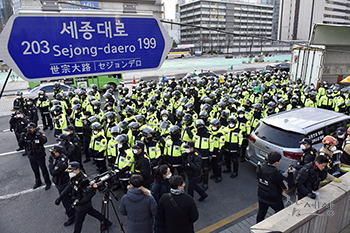 27일 오전 7시 30분 경, 약 100명의 종로구청 직원과 200여 명의 용역, 병력 12개 중대가 광화문 세종로 소공원에 있는 3동의 보수단...