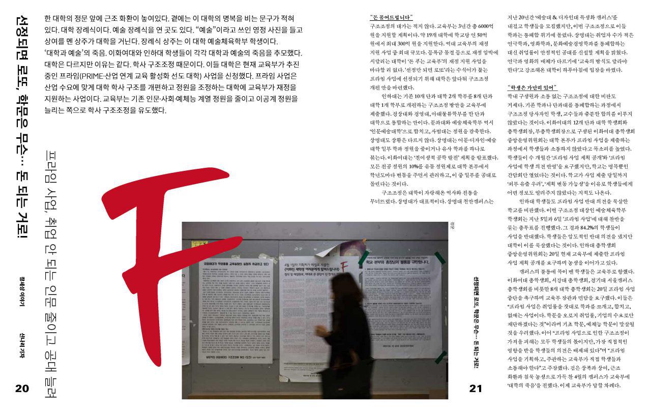 한 대학의 정문 앞에 근조 화환이 놓여 있다. 곁에는 이 대학의 명복을 비는 문구가 적혀 있다. 대학 장례식이다.
