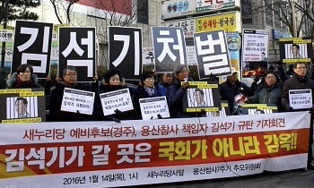 용산참사 책임자인 김석기 당시 서울경찰청장이 20대 총선 출마를 위해 새누리당 예비후보로 등록한 것에 시민사회가 강하게 규탄하며 사퇴를 촉구했다...