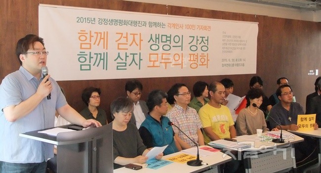 제주 강정마을 해군기지 건설에 반대하는 시민사회단체들이 7월 말에 열리는 강정 주민 투쟁 3000일을 기념하며 '2015 강정 생명평화 대행진'...