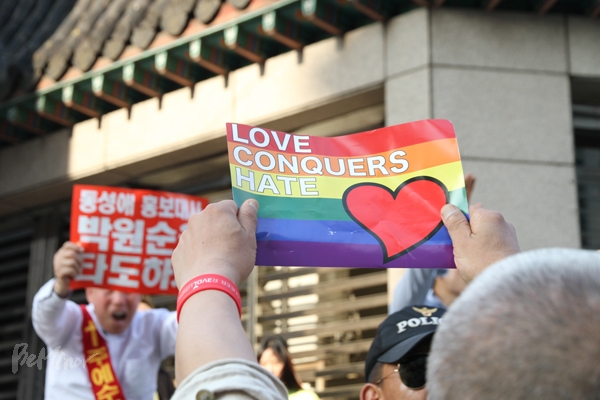 16회 퀴어문화축제 퀴어퍼레이드가 무사히 끝났다. 보수 기독교 단체 수천 명이 행사를 방해하려 시도했으나, 시민과 외국인 3만여 명은 혐오에 ‘...
