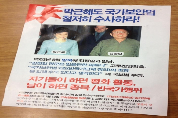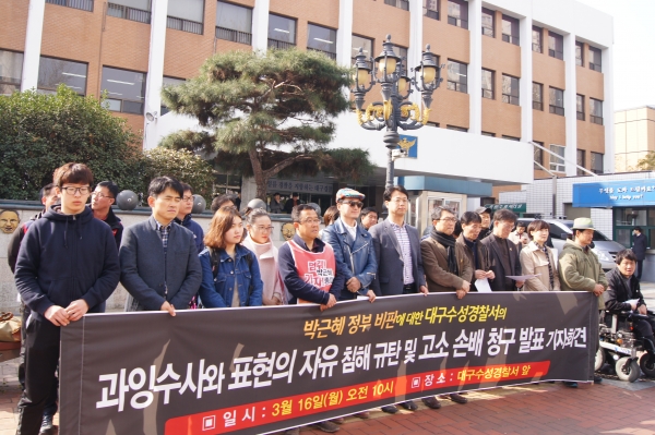 '박근혜 전단지'배포 시민 압수수색에 대구의 인권단체가 '표현의 자유 침해'와 '개인 프라이버시 침해'라 지적했다. 경찰 고소와 함께 손해배상 ...