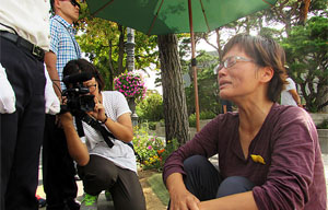 박근혜 대통령이 세월호 참사에 대해 한 달여 만에 침묵을 깨고 말문을 연 날, 세월호 유족이 경찰에 막혀 청와대 민원실에 가지 못하고 길바닥에 ...