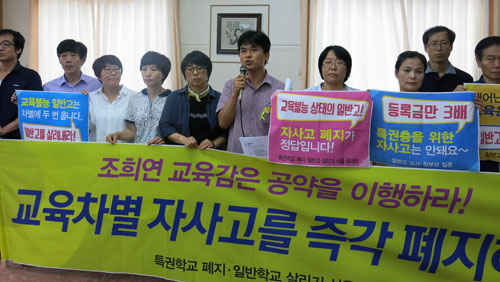 서울 교육시민단체들이 자율형사립고(자사고)의 재지정 취소를 요구하며 서울교육청 11층에서 농성을 시작했다.