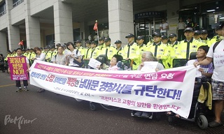 프란치스코 교황이 방한한 14일, 장애인계는 명동성당 내부에 난입한 경찰에게 참혹하게 폭행당한 사실을 알리는 기자회견을 열었다.