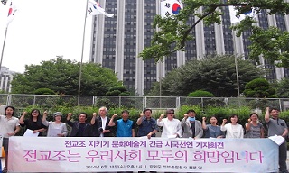 문화예술단체 및 예술인들이 정부의 전국교원노동조합 법외노조화에 반대 의사를 밝히고, 19일 예정된 1심 판결에서 사법부가 전교조 합법을 인정할 ...