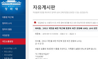 교육부가 청와대 누리집의 자유게시판에 글을 올려 박근혜 정권 퇴진운동을 선언한 43명의 교사들에 대해 엄정대응 입장을 밝혀 파문이 예상된다. 1...